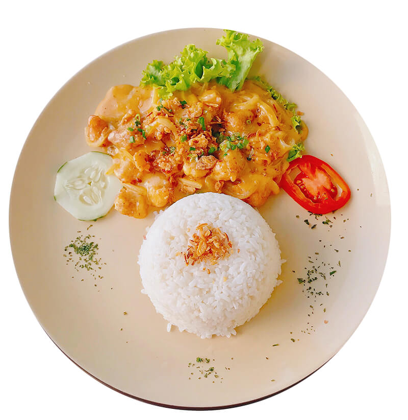 Tender chicken simmered in a fragrant blend of spices, tomatoes, and coconut milk, served with steamed rice.